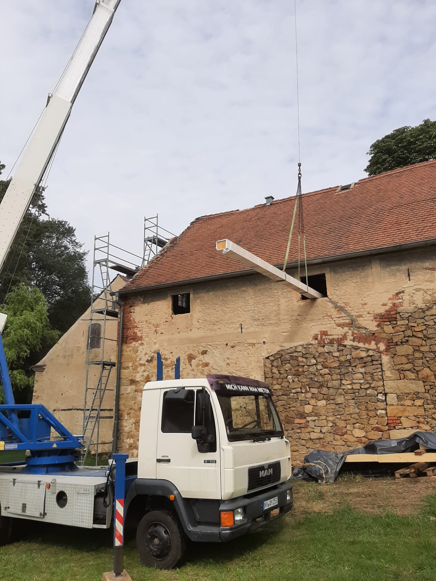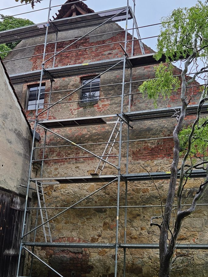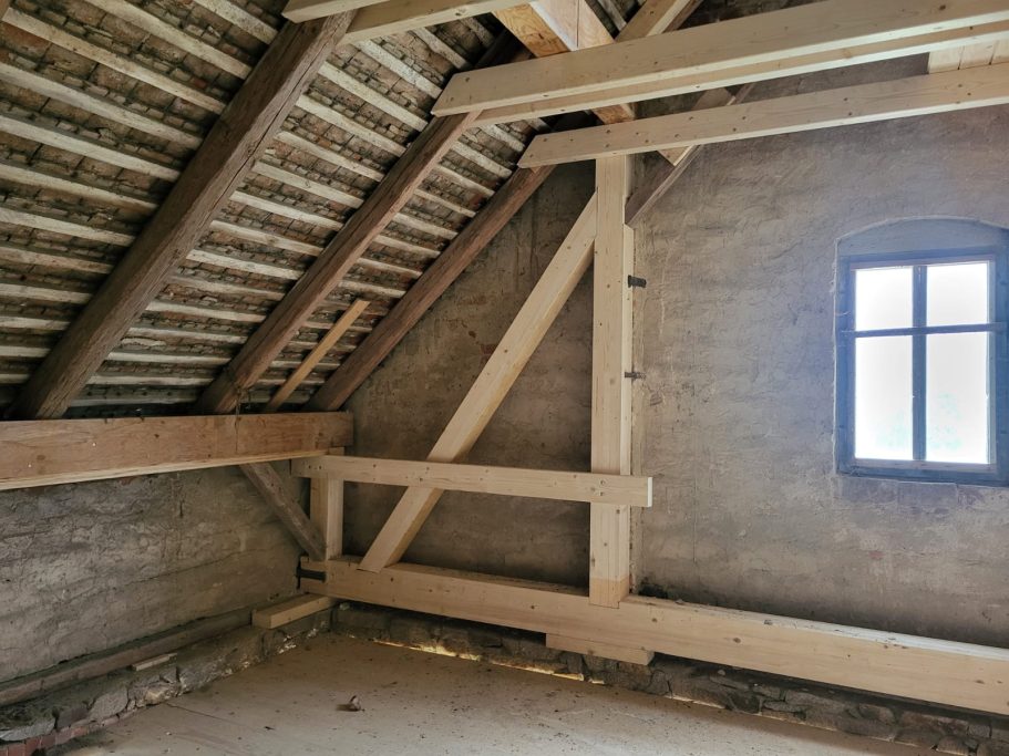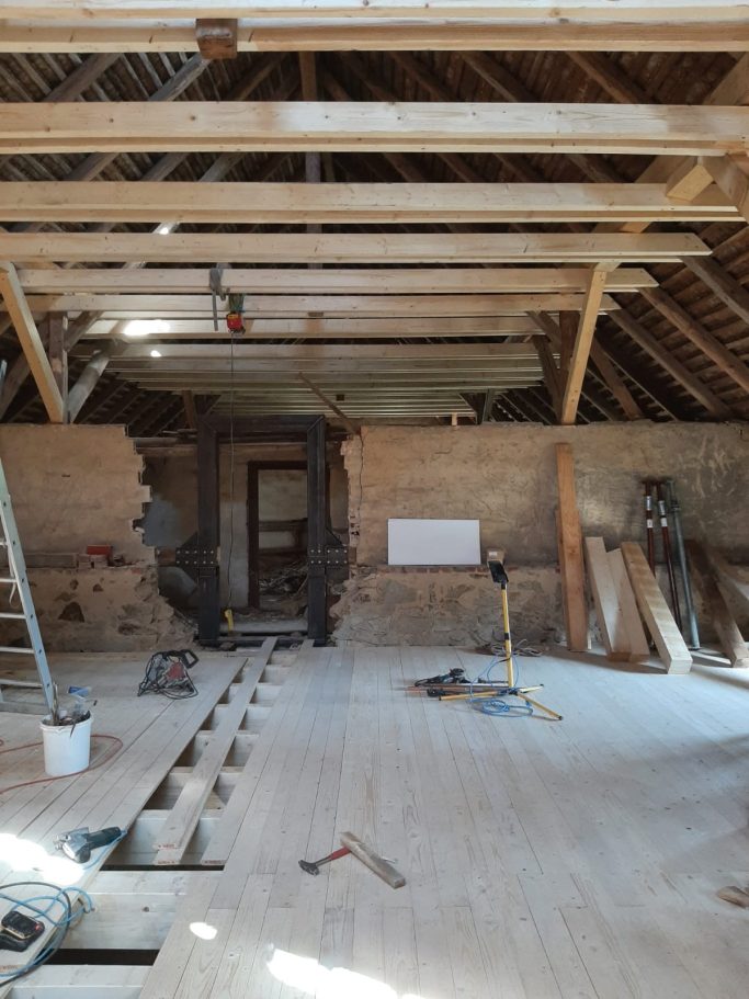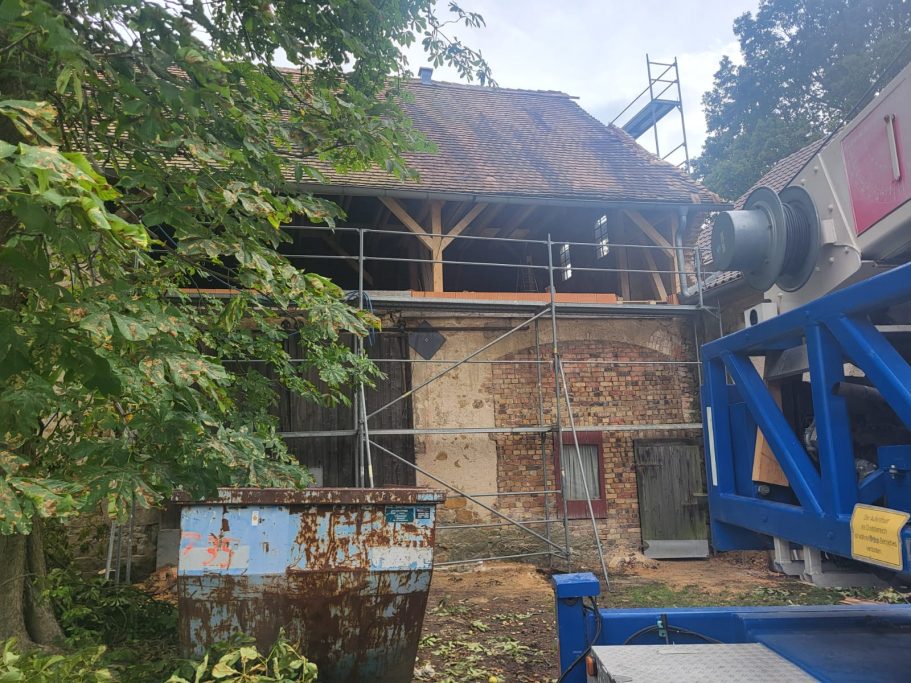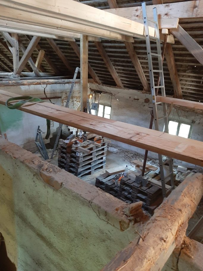 Mit Hilfe einer bewilligten Denkmalförderung und eines verrückten Dachdeckers, schafften wir es, das dass alte Gebäude wieder mit Visionen und Ideen gefüllt werden kann.